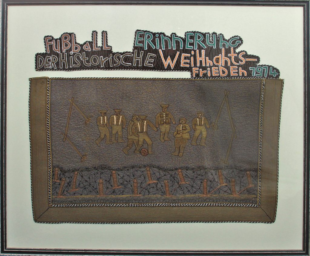 Eine, welche in diesem Kunstwerk Ausdruck verliehen bekommt, ist die vom spontanen Fußballspiel zwischen deutschen und britischen Soldaten. Leutnant Kurt Zehmisch vom sächsischen Infanterieregiment 134 - er war ein Französisch und Englisch sprechender Lehrer aus Weischlitz im Vogtland - hielt in seinem Tagebuch fest, dass die Briten mit einem Fußball aus ihrem Graben kamen und man hat untereinander hin und her gekickt. Er und der Britische Offizier bezeichneten das Ereignis als unvorstellbar und unglaublich wunderbar.